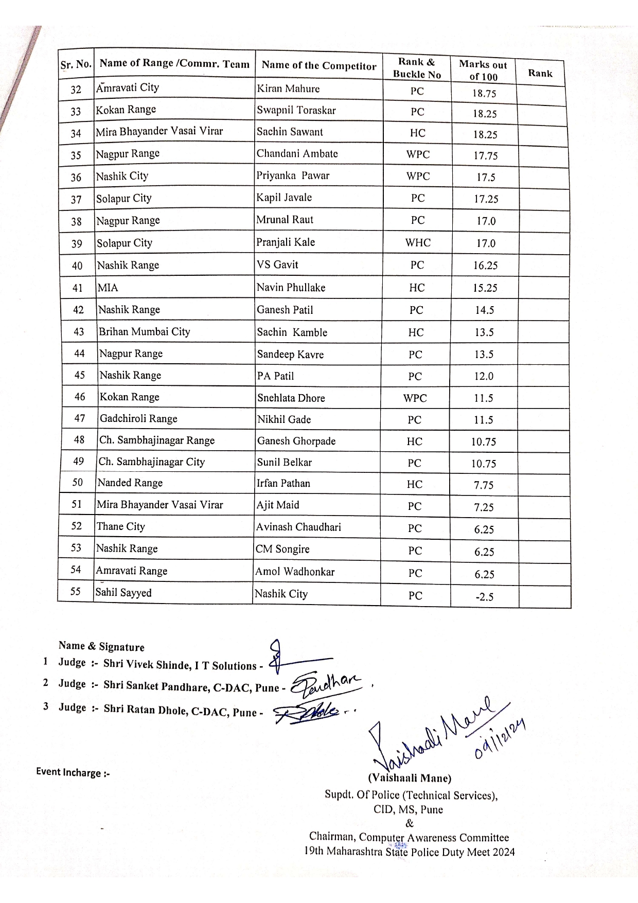 Computer Awareness Competition EVENT -1 (Objective Test) Result