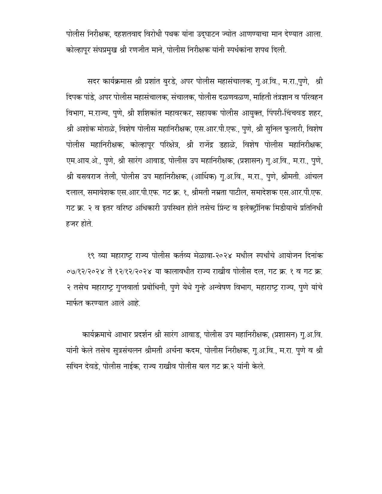 १९ वा महाराष्ट्र राज्य पोलीस कर्तव्य मेळावा -२०२४ प्रेस नोट